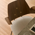 Originally created to seat visitors in the dining rooms of the Royal Festival Hall, the RFH Armchair by Robin Day is charactericed by the softly curved backrest and outwardly reaching arms. Rich in materiality, the chair’s striking form is achieved through a process of form-press moulding layers of beech and walnut veneer.