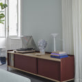 The Enfold Sideboard combines industrial materiality with residential references for a new perspective on modern storage. Made from a lacquered steel that gently enfolds its top and bottom in solid oak, the Enfold Sideboard fuses cold and warm materials for a unique expression, paired with the vibrantly modern expression of its ridged steel doors. The flexible design is available in four sizes, which all have adjustable shelves and discreet cable outlets. This offers the opportunity to find just the right fit for your space, function and needs — be it a media console, in the hallway or a tall sideboard for storage.