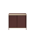 Body, shelves and sliding doors in powder-coated bent steel. Top and base are made from FSC™-certified (FSC-C028824) solid oak treated with a clear oil or matte clear lacquer for other variants. Adjustable feet. ​​