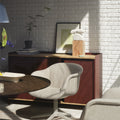 The Enfold Sideboard combines industrial materiality with residential references for a new perspective on modern storage. Made from a lacquered steel that gently enfolds its top and bottom in solid oak, the Enfold Sideboard fuses cold and warm materials for a unique expression, paired with the vibrantly modern expression of its ridged steel doors. The flexible design is available in four sizes, which all have adjustable shelves and discreet cable outlets. This offers the opportunity to find just the right fit for your space, function and needs — be it a media console, in the hallway or a tall sideboard for storage.