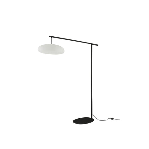 Innovative floor lamp that embodies the perfect balance between functionality and style. Featuring an oval-shaped base made of laser-cut steel, Pukka is complemented by a rod and support arm both made of a finely textured satin black epoxy lacquer finish. The elegant white microsphere roto-molded polyethylene diffuser, hanging by cable from the end of the support arm, allows the LED light source to project a soft and refined beam of light, giving rooms an intimate and welcoming atmosphere. Placed in a reading nook, living room or professional studio, Pukka gives interiors a touch of style and unique design.