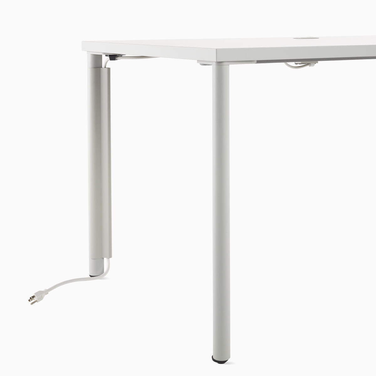 Optional leg cable manager keeps power and data cords tidy and accessible underneath the surface.
