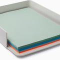 The sophisticated forms, material production, and muted color palette of the Formwork Collection (2013) reflect a level of thoughtfulness rarely brought to office desk accessories. A mix-and-match array of options lets you organize papers, tools, and other necessities in the way that works best for you.