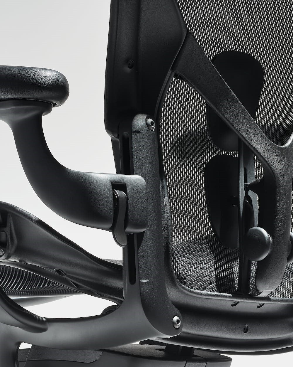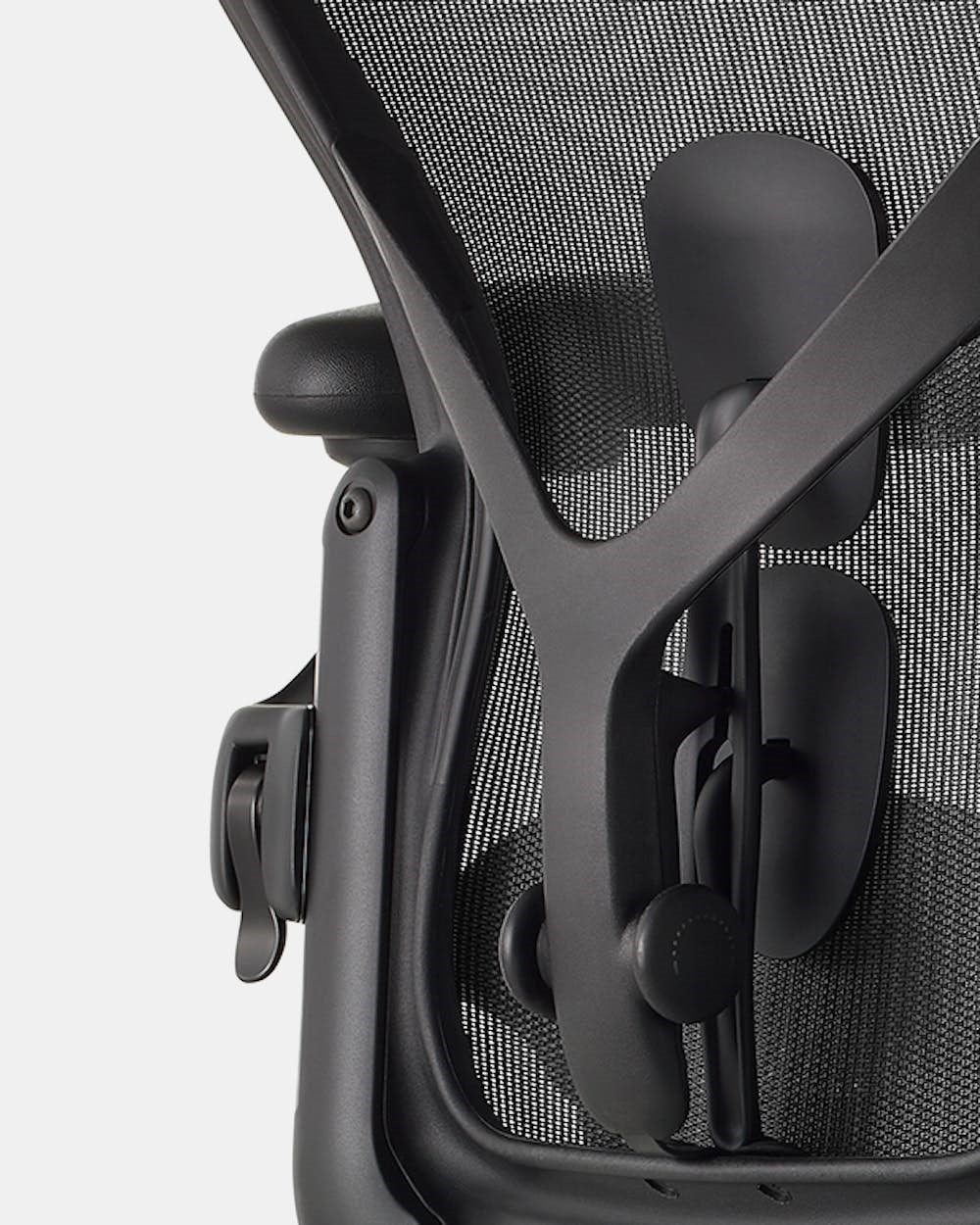 Every component of Aeron is designed to maintain proper alignment and balance – no matter the sitting position. The patented PostureFit SL hardware provides adjustable spinal support that helps your body mimic its strongest posture: standing, chest open, and pelvis tilted slightly forward. From upright and active to a deep recline, Aeron’s state-of-the-art Harmonic 2 tilt mechanism moves with you naturally and supports your entire range of movement. Fine-tune Aeron even further with its fully adjustable arms, seat height, and recline. And with the new Onyx colorway, you can experience the same comfort with more sustainability. Made with up to 2.5 pounds of recycled plastic, the production of Aeron in Onyx helps divert more than 44 metric tons of plastic from the ocean annually.*